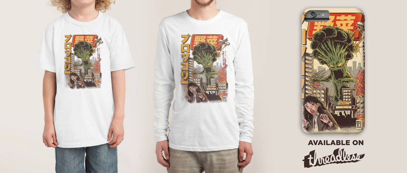 This illustration is a parody of a mashup with Godzilla + a broccoli.