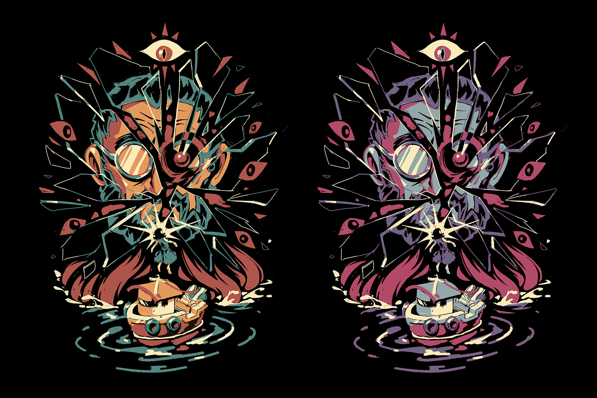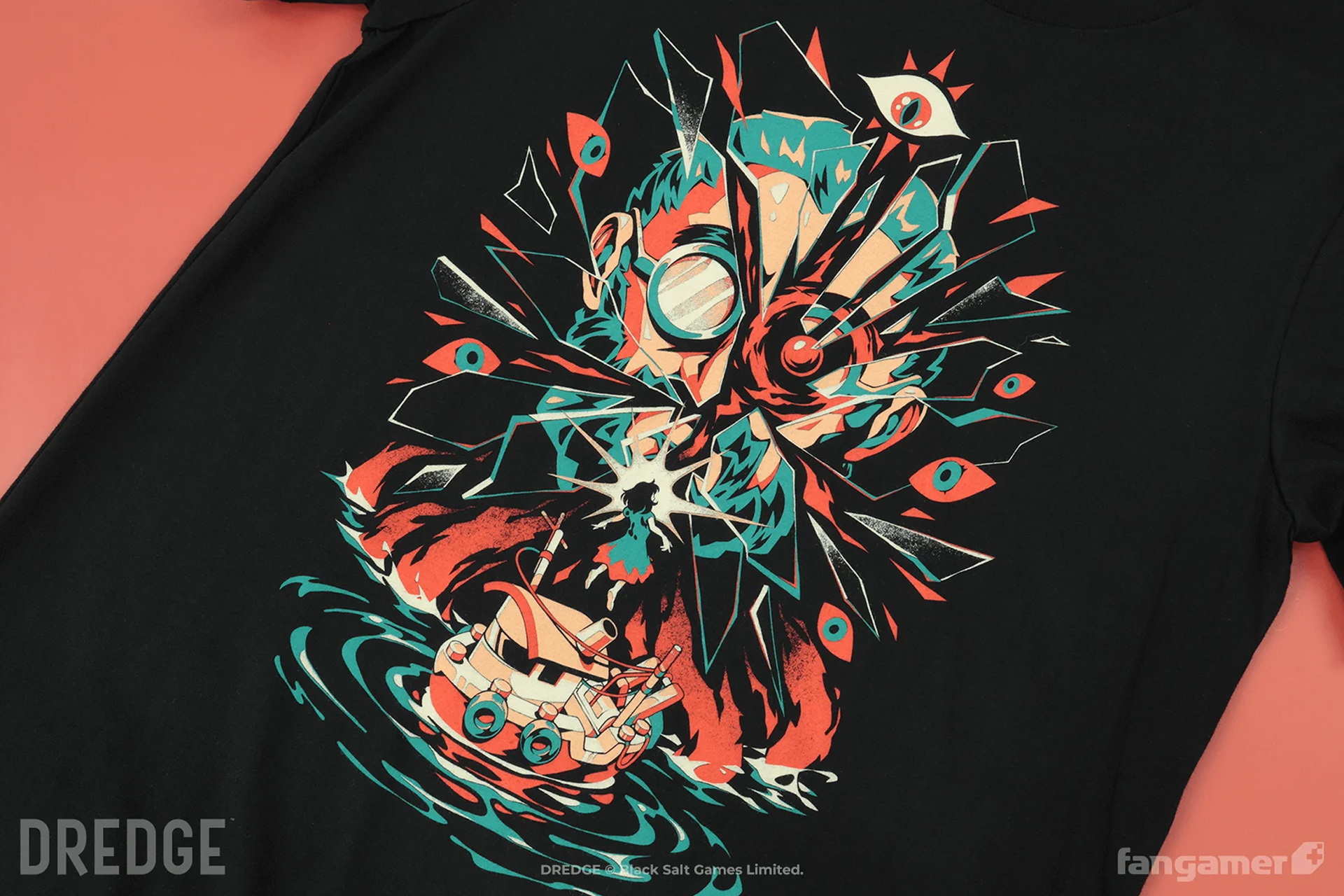We were invited by Fangamer to work on this official t-shirt design of the game Dredge. The game has excellent art direction and illustrations. So we had a great time being inspired by the original material to create our own twist on it.