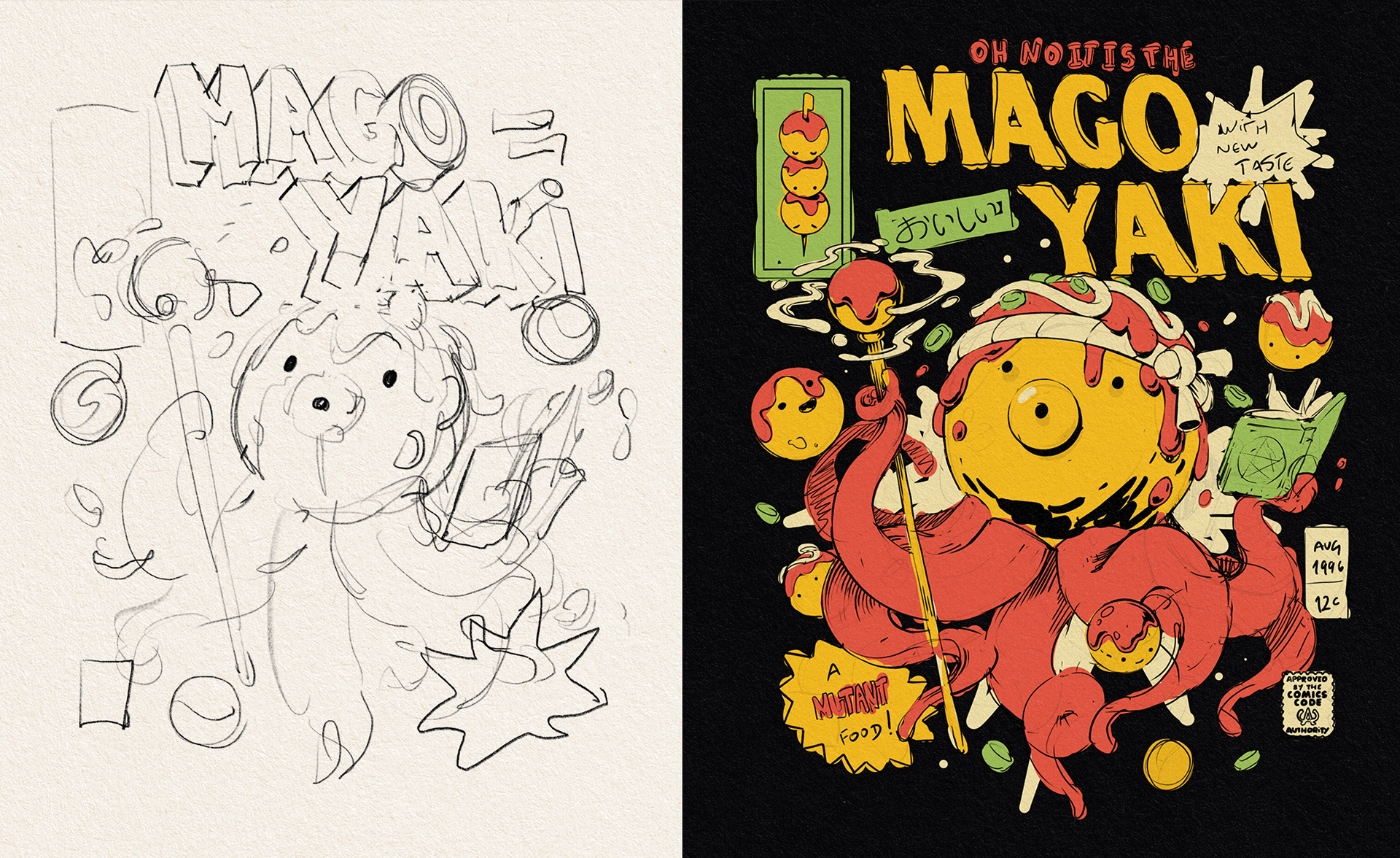 This is a collection of original characters t-shirt of ours. Food is one of our biggest passions and of course we blended it with a spooky/horror vintage twist. These design products can be found in a wide variety of products, including apparel, home decor, and more, at our Redbubble store and in licensed stores.
