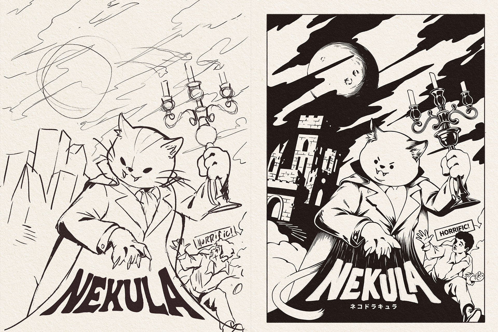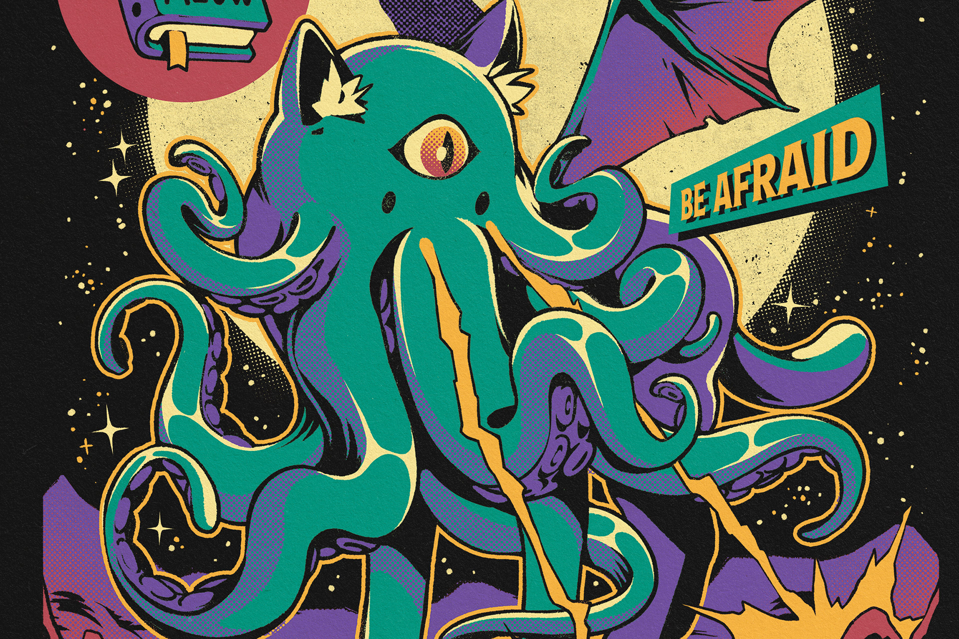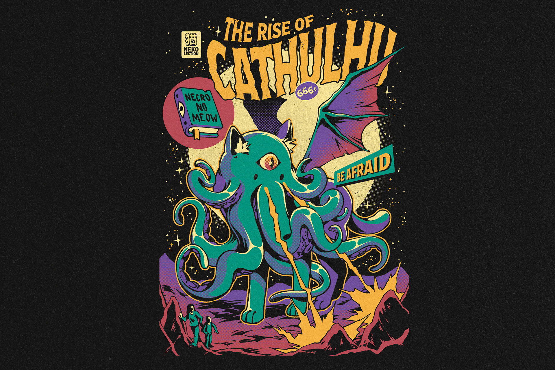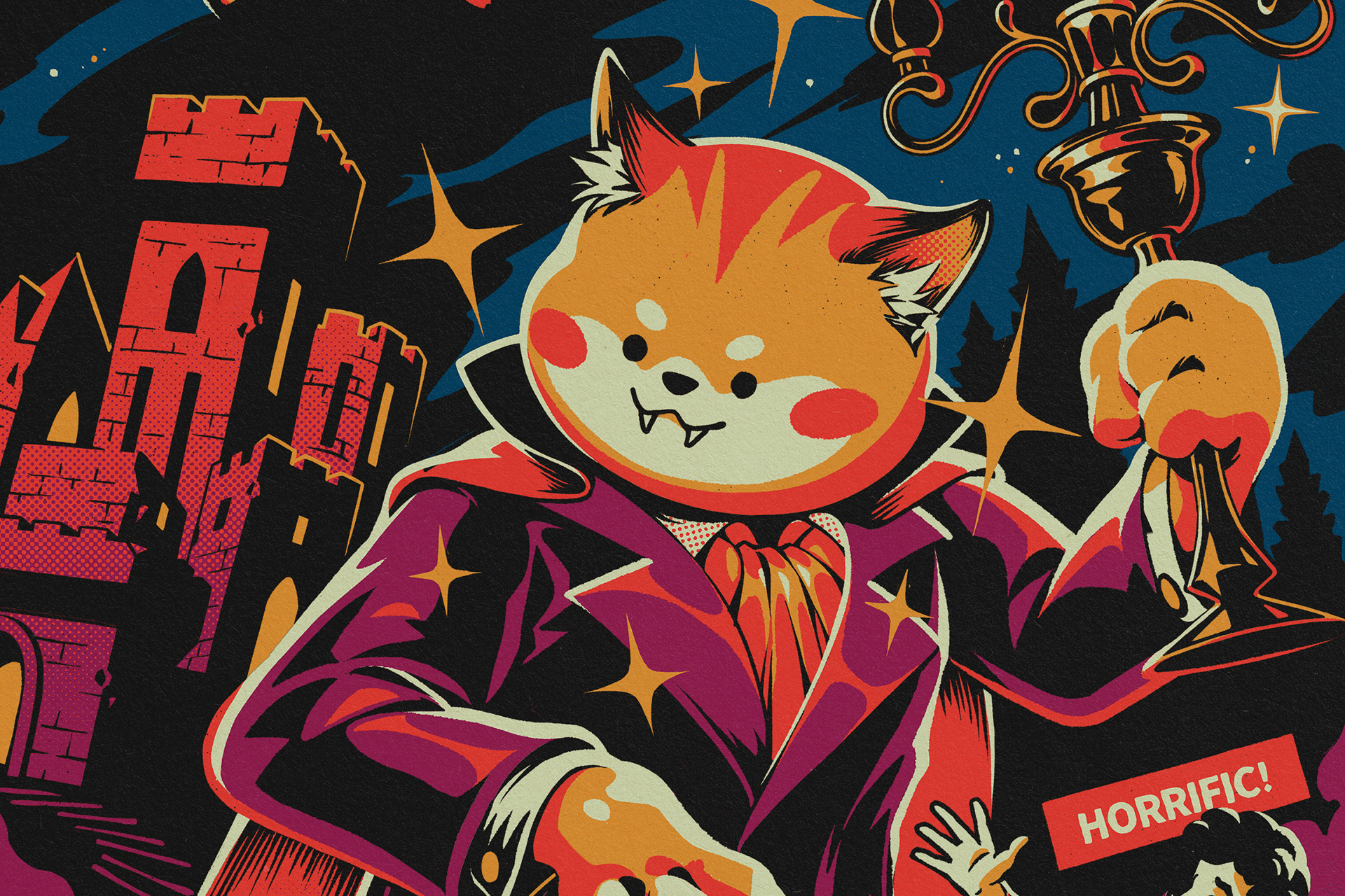 This is a collection of original characters t-shirt of ours. We love to play with animals (especially cats) and spooky/horror themes with a vintage twist. These design products can be found in a wide variety of products, including apparel, home decor, and more, at our Redbubble store and in licensed stores.