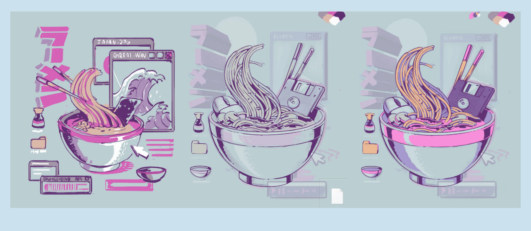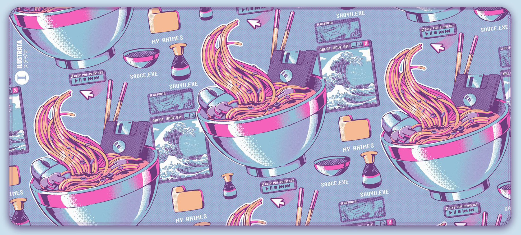 The Web Ramen design was initially though as a T-shirt design, and during 2024 in partnership withThe KapCowe adapted it and released the Web Ramen keyboard cap set and desktmat. This product is available here.You can also find apparel, home decor and other products featuring this designhere